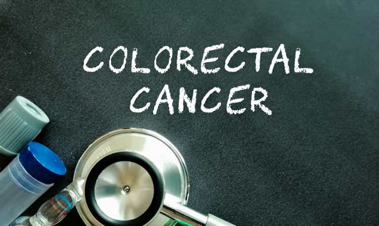 colorectal cancer word, medical term word with medical concepts in blackboard and medical equipment