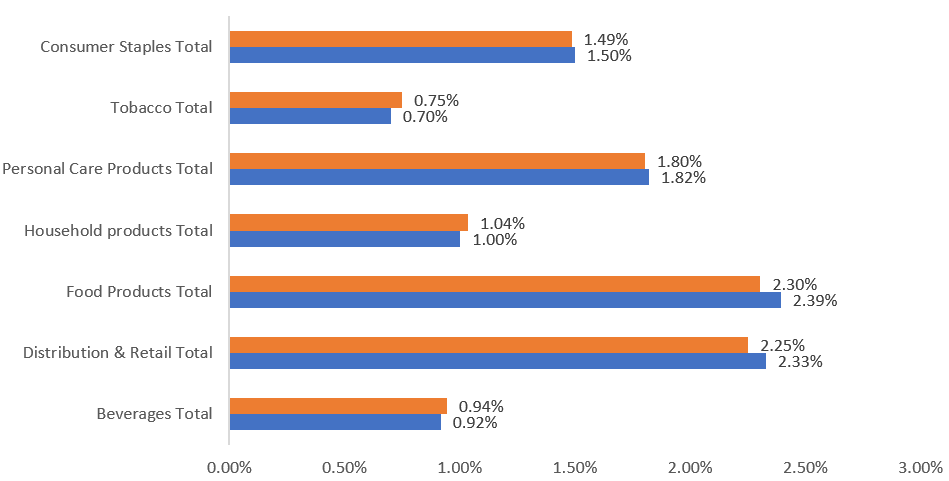 The consumer staples sector, which takes up about 6.6% of the S&P 500 Index, has seen a marginal fall in short bets during mid-January as compared to December. S&P 500 consumer staples stocks had an average of 1.52% short positions.
