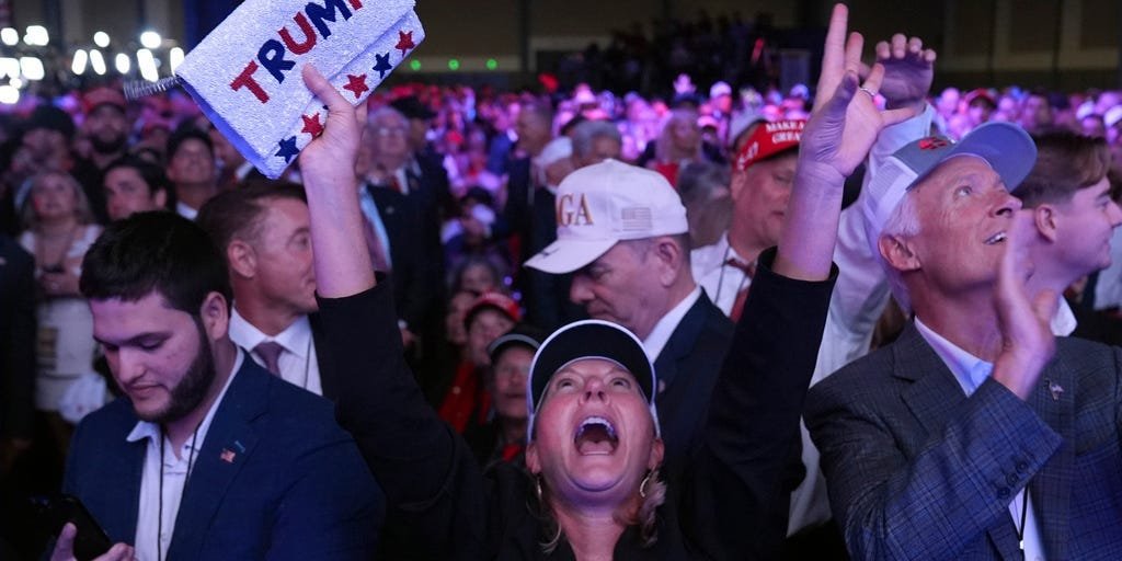 At the Palm Beach Convention Center watch party, crowds of Trump supporters were seen celebrating as the votes inched closer to a victory for the Republican candidate.