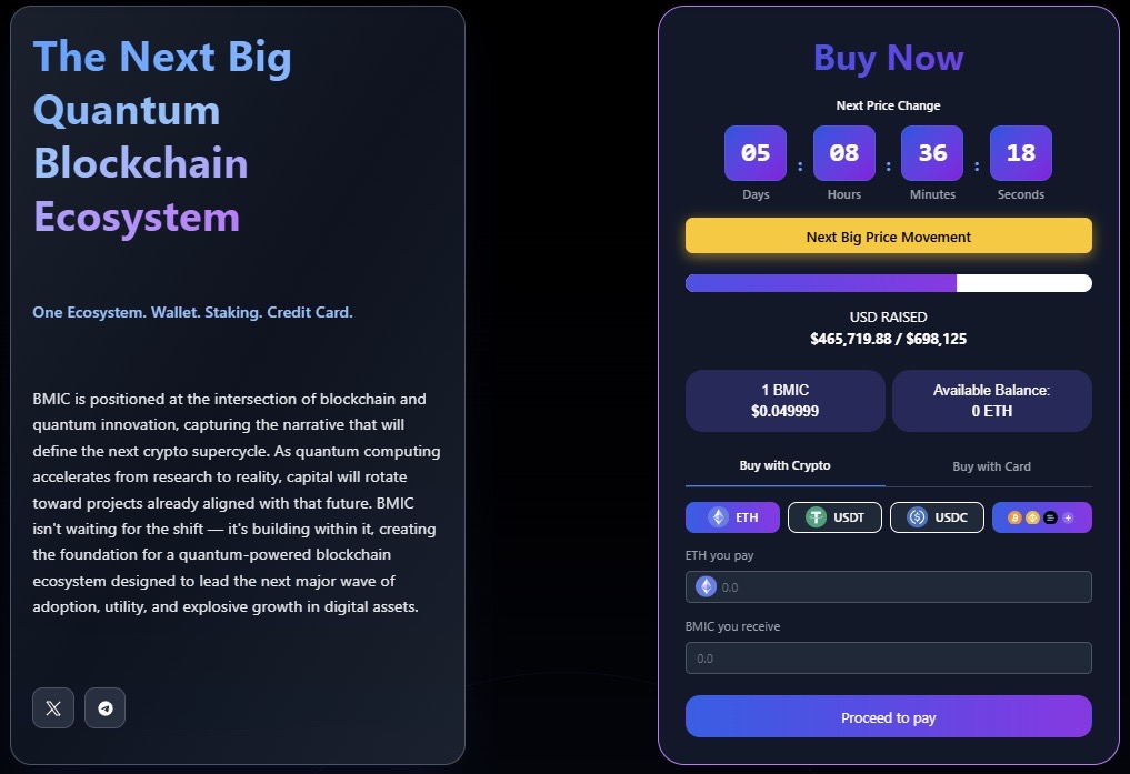 That sounds like a doomsday scenario, but one project still in its presale phase is already building a solution. Called BMIC ($BMIC), it aims to replace vulnerable wallets with a new kind of system built from the ground up for the quantum era.