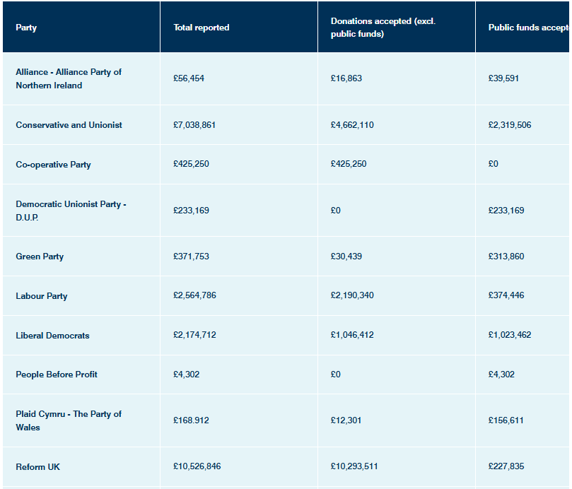 Labour brought in £2.1 million, and the Liberal Democrats reported £1 million. This makes it the first full quarter in which Reform will outpace Conservatives in fundraising since the general election in 2024.