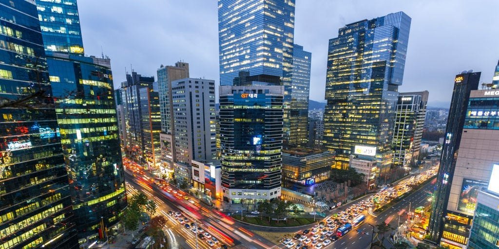 View over busy Gangnam district at dusk. Seoul. South Korea.