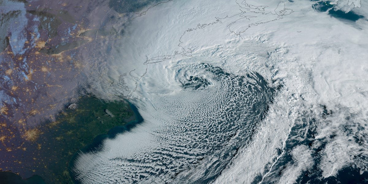 The National Oceanic and Atmospheric Administration’s GOES-19 weather satellite captured striking photos of the powerful winter storm slamming much of the Northeastern US on Monday.