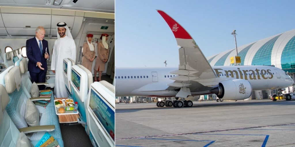 Emirates revealed the 312-seat plane on November 27 at a delivery ceremony in Dubai. It features refreshed business and coach cabins including the airlines’ popular premium economy.
