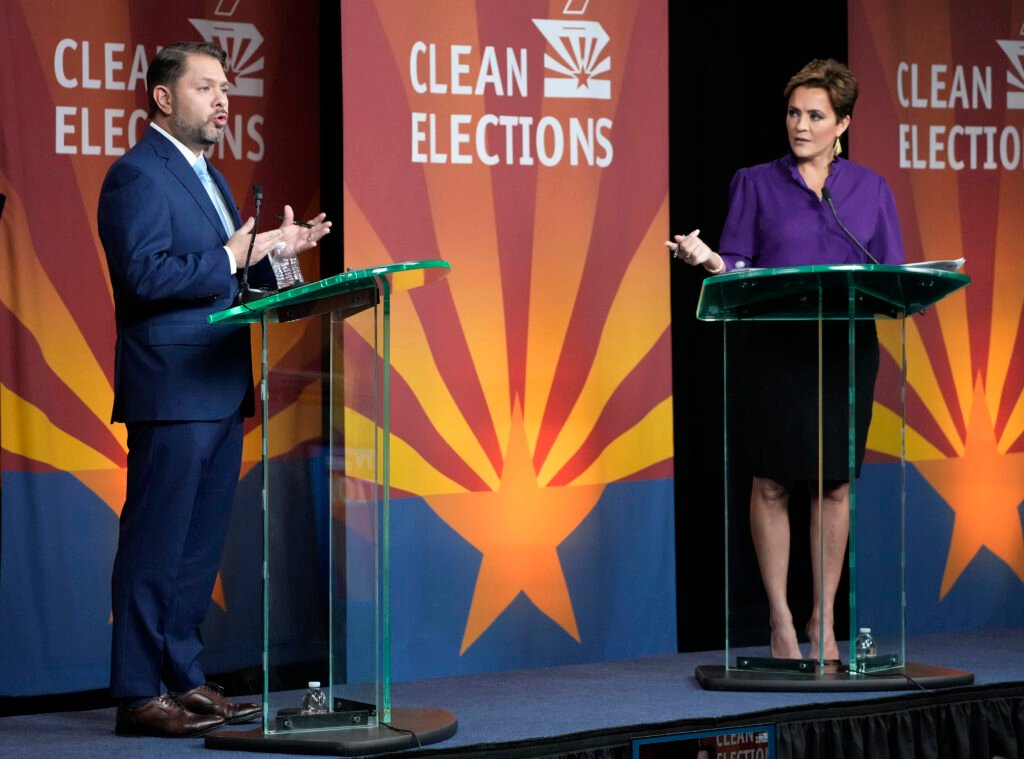 Democrat Senate candidate Rep. Ruben Gallego (D-Ariz.) and Republican Senate candidate Kari Lake are both vying for the seat currently held by independent. Sen. Kyrsten Sinema.