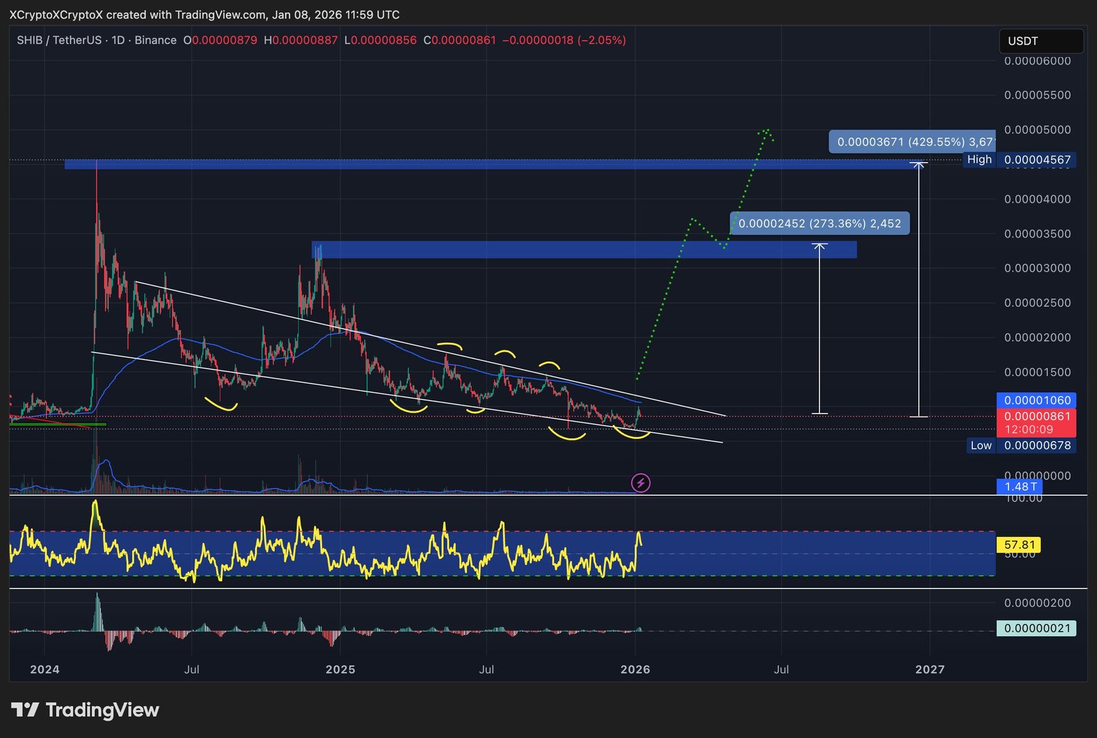 If it does, we could see the Shiba Inu price reach $0.000025 by Q2, and then $0.000036 by H2.