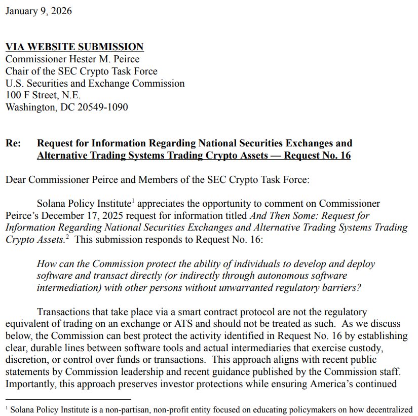 In a letter submitted Friday through the SEC’s website, the nonprofit responded to a December 17, 2025, request for public input from Commissioner Hester Peirce on how crypto assets are traded on national securities exchanges and alternative trading systems.