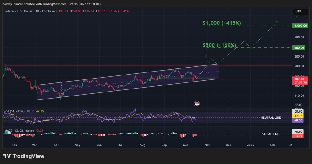The key breakout threshold sits at $300, the early-year Solana price all-time high. Once flipped to support, SOL could enter new price discovery, targeting $500 for a potential 160% gain.