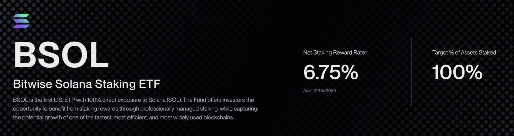 Staking rewards are an attractive feature for investors. At the time of writing, BSOL’s staking yield sits at 6.75%. These rewards are added to the fund’s assets daily and should boost the price of the ETF in the long run.