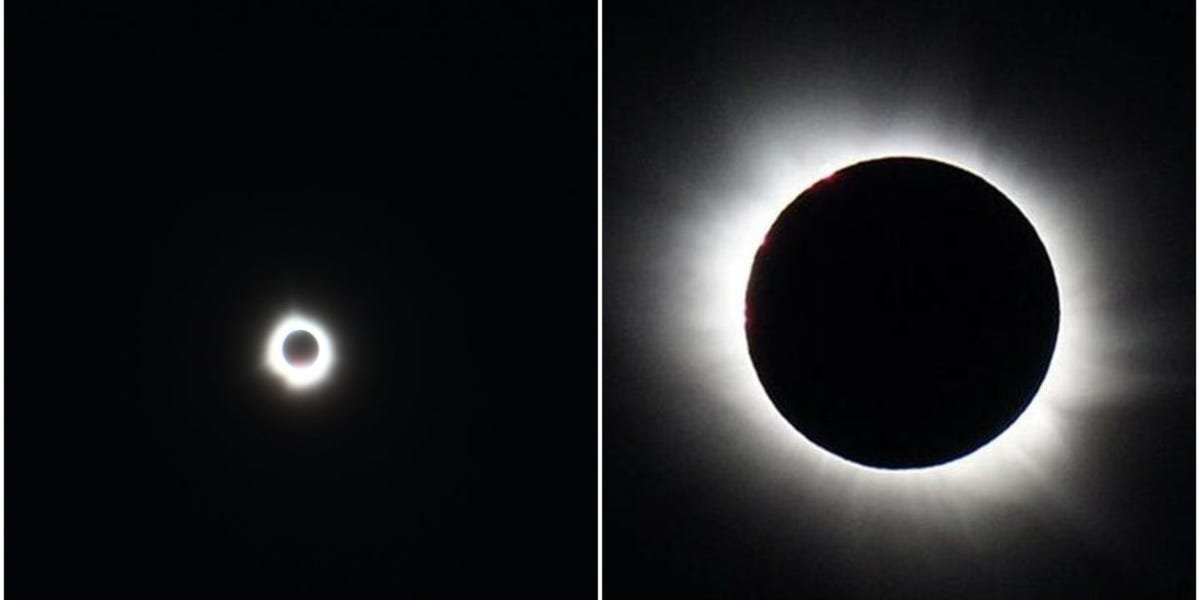 That’s because your camera’s sensor may get confused by the sudden drop in light in the last moments before totality, Tafreshi said. Even though totality doesn’t cause total darkness, “The drop in light is so fast that we feel it is becoming pitch black,” he said.