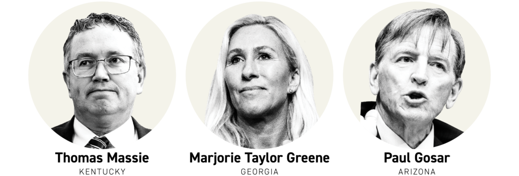 Republicans view their three colleagues who spearheaded that effort — Reps. Marjorie Taylor Greene (R-Ga.), Thomas Massie (R-Ky.) and Paul Gosar (R-Ariz.) — as the most likely to vote against Johnson in a future speakership vote, regardless of what he does in the coming months.
