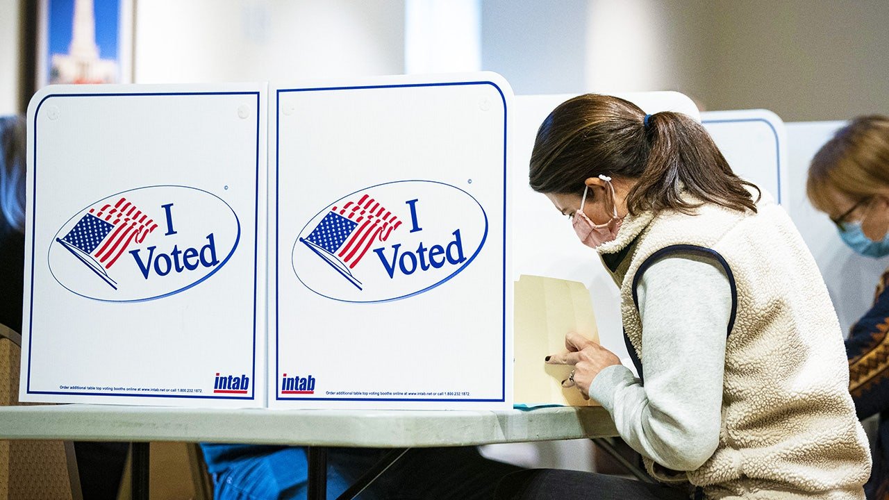 A voter cast ballots at a polling location in Alexandria, Virginia, on Tuesday, Nov. 2, 2021. (Al Drago/Bloomberg via Getty Images)