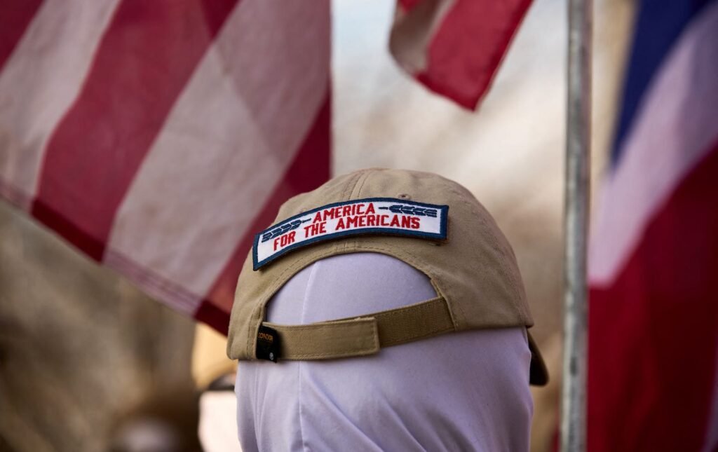 Members of the far-right militia group Patriot Front participate in the 2025 March for Life in Washington, DC, on January 24, 2025.
