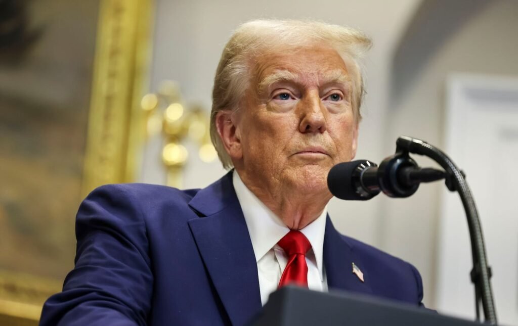 US President Donald Trump in the Roosevelt Room of the White House in Washington, D,C., on Jan. 21, 2025.(Photographer: Aaron Schwartz / Sipa / Bloomberg)