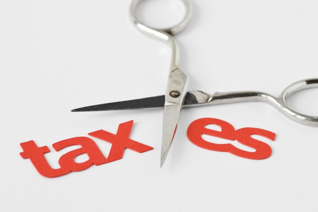 Scissors cutting the word Tax – Tax cut concept