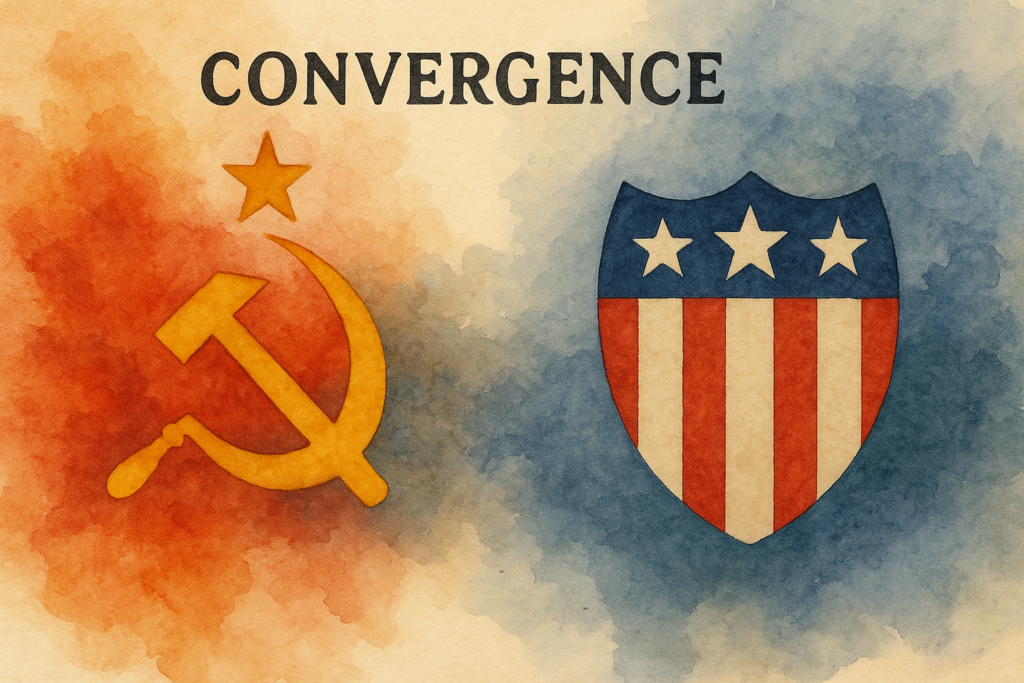 Forward to the present, the convergence has been progressing much faster, albeit not less stealthily. America has joined the race with a vengeance. A column of Greg Ip in the Wall Street Journal makes the point in different terms (“The U.S. Marches Toward State Capitalism With American Characteristics,” August 11, 2025); the whole piece is worth reading, but a couple of quotes will give its flavor: