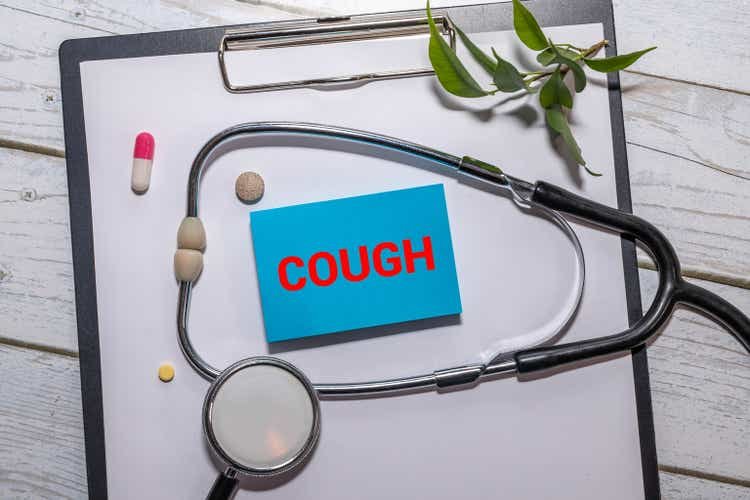 COUGH word written on card.