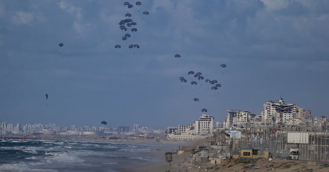 U.S. officials sketched out the plan, which would make the United States more directly involved in delivering aid, hours before President Biden was scheduled to give his State of the Union address on Thursday evening. Details for what they described as a floating pier off Gaza would be included in the speech, the officials said.