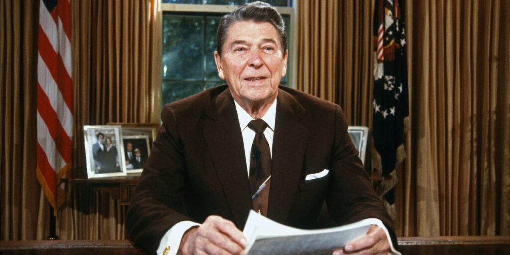 Reagan made the remarks featured in the ad while defending limited tariffs on Japan, which he imposed in response to unfair trade practices in the semiconductor industry, but warned that broader protectionism could spark trade wars and damage the global economy.