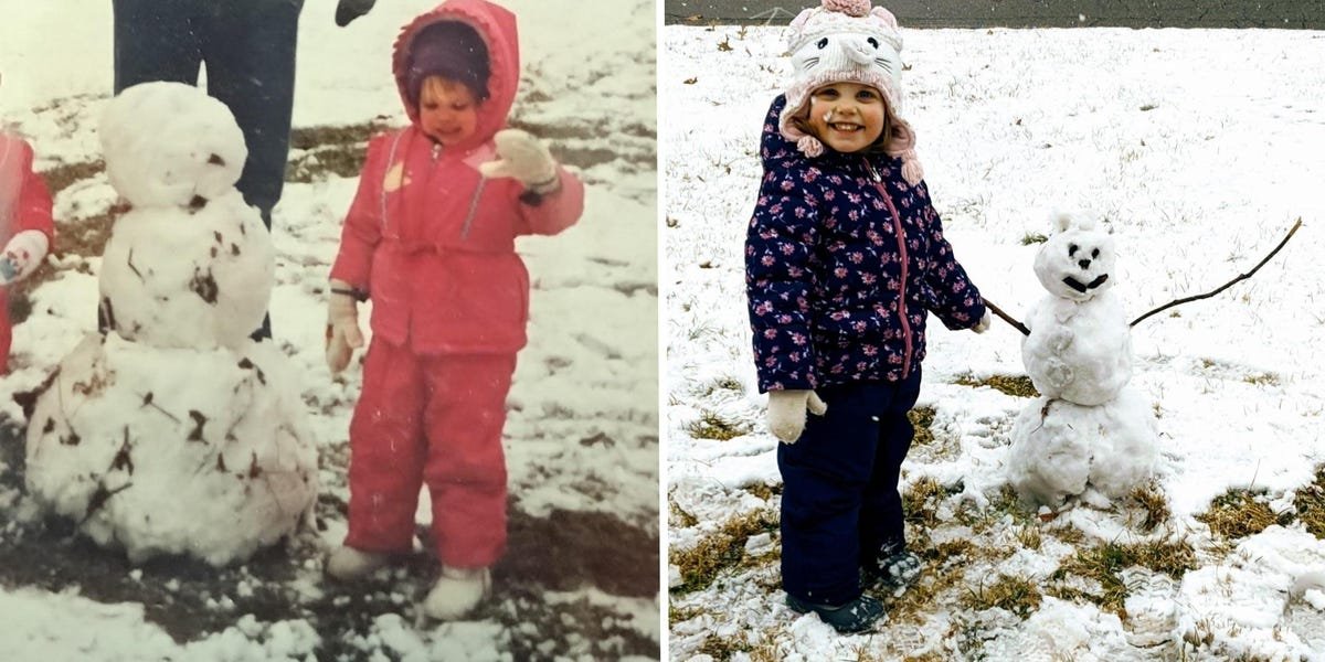 Over the past four years, we’ve taken numerous walks, tricycle rides, and scooter rides around our neighborhood. In the fall, we watch all the leaves change from green to gold and rust. In spring, my daughter puddle-hops along the streets, and in winter, she builds snowmen in the front yard, just like I did as a child. We’ve planted our own garden, growing tomatoes and strawberries, and have been slightly more successful than my siblings and I were.