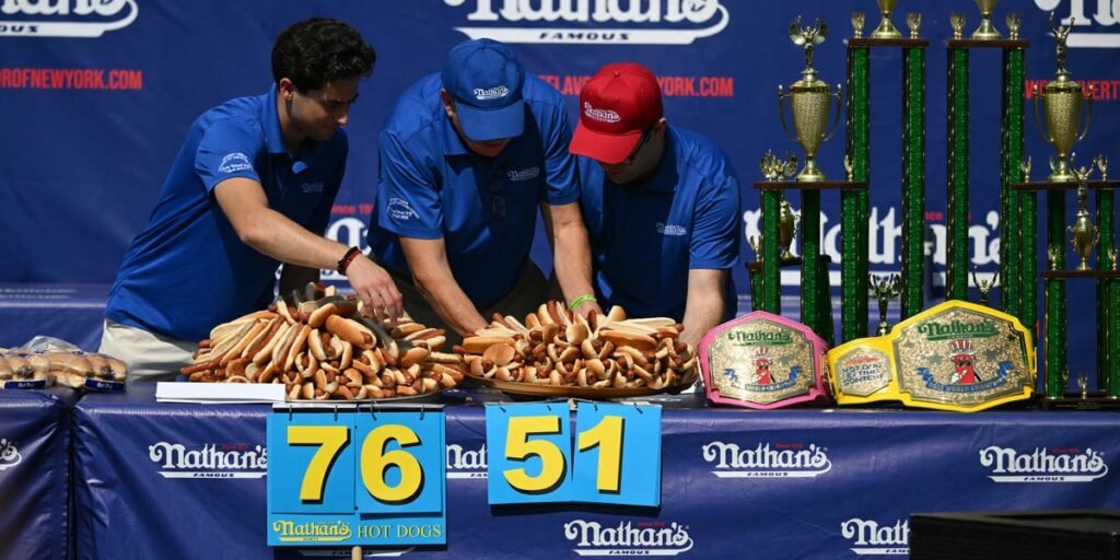 Later, in the men’s competition, Indiana native Cameron Meade made his Nathan’s debut, eating 20 ¾ hot dogs to finish in 15th place.