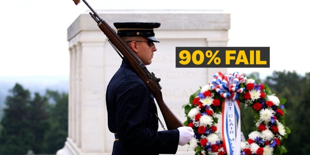 To become a sentinel at the Tomb of the Unknown Soldier in Arlington National Cemetery, Army soldiers must endure a six-to-nine-month training program that 90% of trainees do not complete.