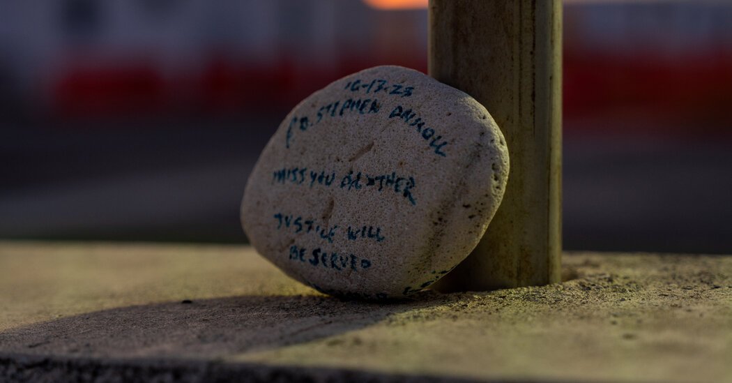 Earlier this year, after watching a hearing, Cindy McGinty found a smooth white piece of coral and wrote of her late husband: “Michael G. McGinty. Never forgotten.” She drew a little dragonfly and wrote 9/11.