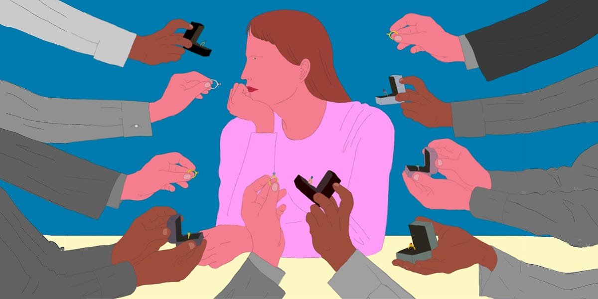 Singledom also appears far more beneficial for women than men on average: Numerous studies have found that single women tend to be happier and healthier and live longer than married ones, while unmarried men have been found to experience markedly higher rates of depression, addiction, and loneliness than those with spouses. “If you are a man, you should probably get married; if you are a woman, don’t bother,” the author and behavioral scientist Paul Dolan quipped in a 2019 interview.