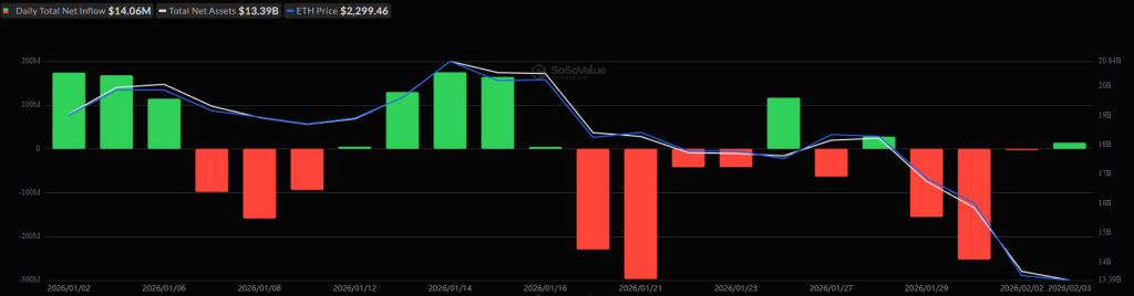 However, the US ETH ETFs broke the brief red streak with minor inflows of $14.06 million on Tuesday. The total net inflow climbed slightly to $11.99 billion.