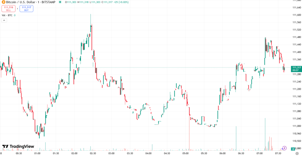 At the time of writing, BTC trades at $111,250. Yesterday, the price surged to the monthly high of $111,742, nearing the all-time high of $111,814, before settling on the current level.