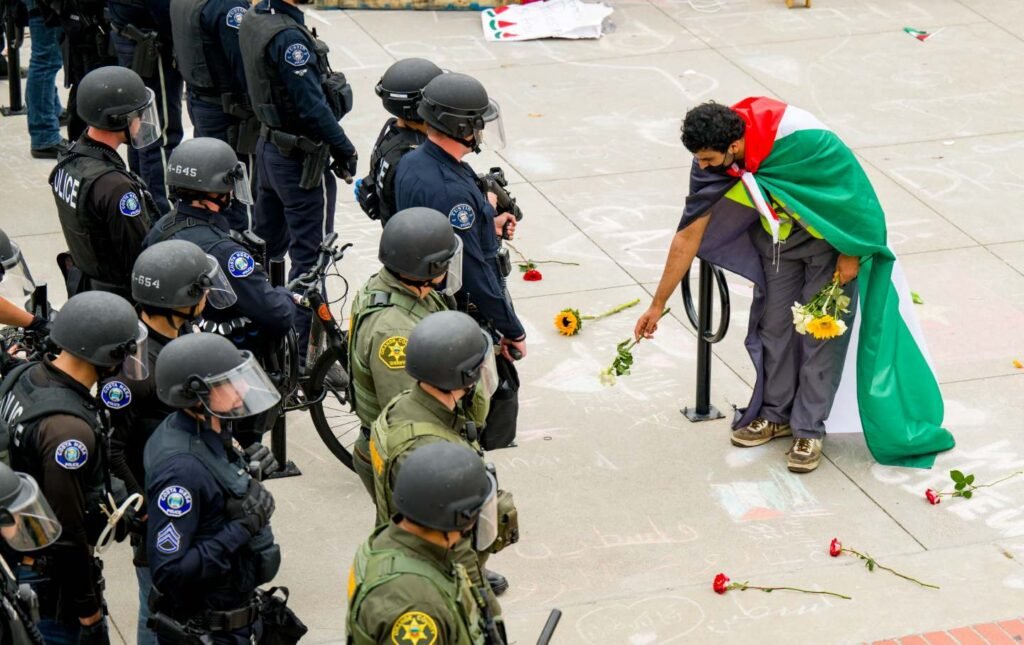 Orleck thinks the situation represents a new wave of McCarthyism. The nature of student protests have not changed, she says. What has changed, as police in riot gear are called in, is the increase in violence and repression in response to protests. “I have suggested this unthinkable thing, which is that they just let students have their protest. They walk onto campus, they carry their signs, they chant, they have speeches, they go home and they study and nothing happens. It’s all peaceful…. That’s not viewed at this point as a credible suggestion, which says to me that things have changed, perhaps for a long time, and that’s chilling.”
