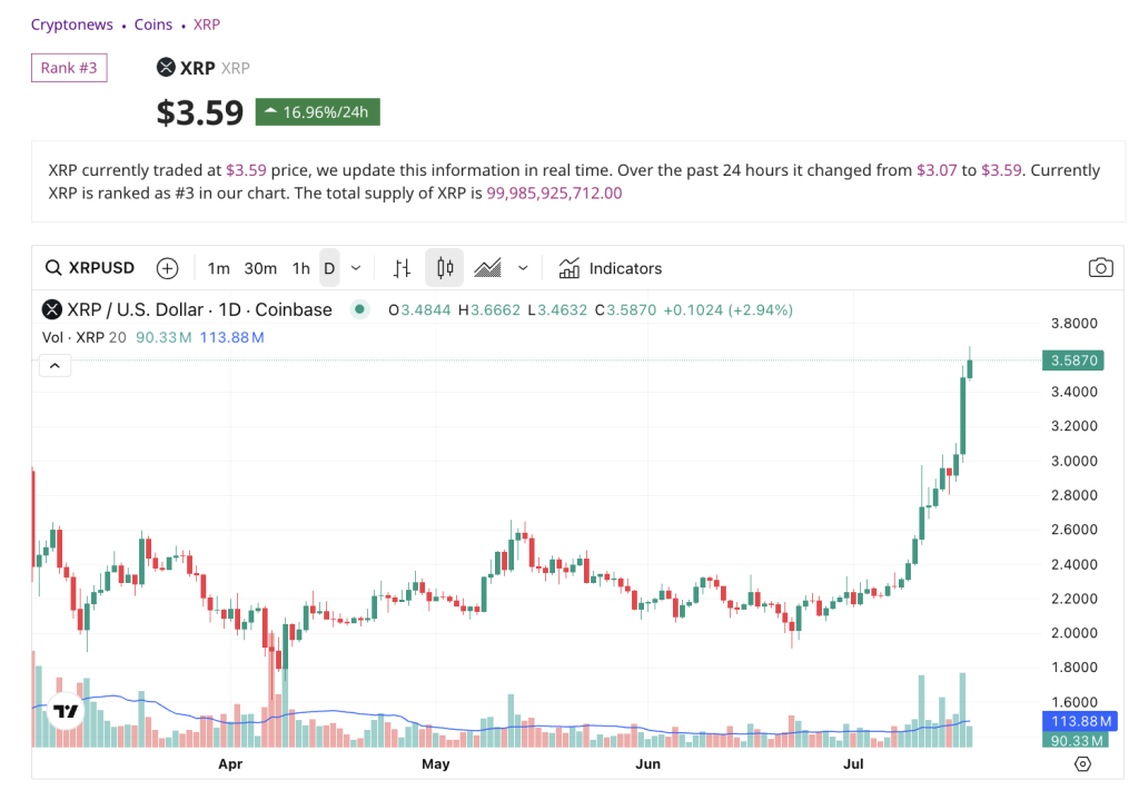 The post XRP Hits All Time High Above $3.60 as Major Crypto Bills Clear House appeared first on Cryptonews.
